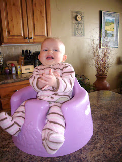 sydney loves to sit in her bumbo chair. what a great idea the bumbo chair is. i just love her little expressions...cant get enough of my sweet girl.
